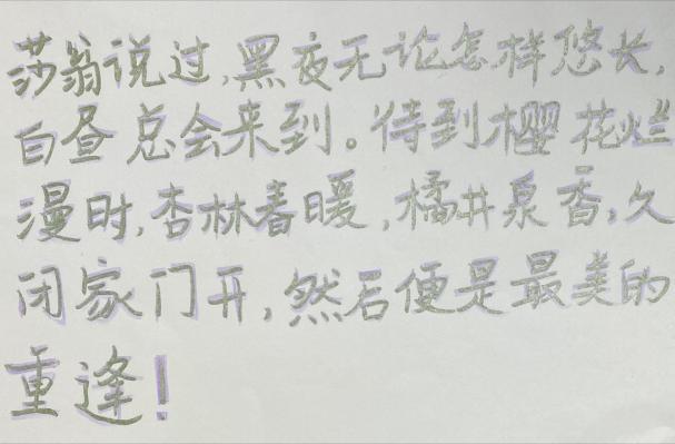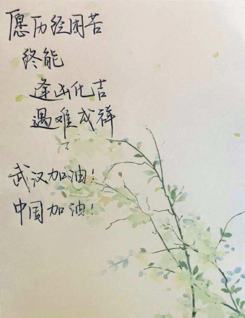 “中华民族历史上经历过很多磨难,但从来没有被压垮过,而是愈挫愈勇,不断在磨难中成长、从磨难中奋起。”我们众志成城,抗击疫情;我们守望相助,攻克时艰;我们齐心协力,同舟共济。这场没有硝烟的战斗必将是以我们的胜利而落幕。