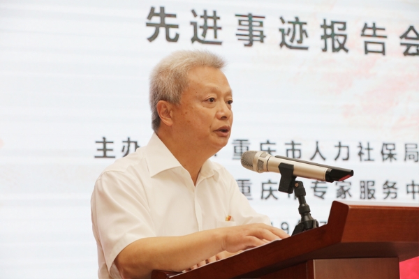 重庆市人力社保局党组副书记、副局长周平,重庆市科技局党委委员雷虹,重庆市农科院党委副书记、院长唐洪军,四川美术学院党委书记黄政,四川外国语大学党委书记明国辉,重庆工商大学副校长苟朝莉,重庆医科大学附一院党委书记兼院长许平,我校党委书记孙泽平、校长黄伟九、副校长金盛,市委组织部、市教委、市科技局有关部门的负责人及社会各界的专家代表100余人出席报告会。