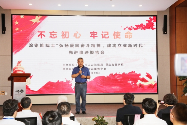 7月10日下午,为深入开展“不忘初心、牢记使命”主题教育,落实习近平总书记关于新时代人才工作的重要指示要求,不断激励全市专家人才弘扬爱国奋斗精神,建功立业新时代,由我校和重庆市人力社保局主办,重庆市专家服务中心承办的“不忘初心、牢记使命”——涂铭旌院士“弘扬爱国奋斗精神 建功立业新时代”先进事迹报告会在重庆市国家级专家服务基地学术报告厅举行。
